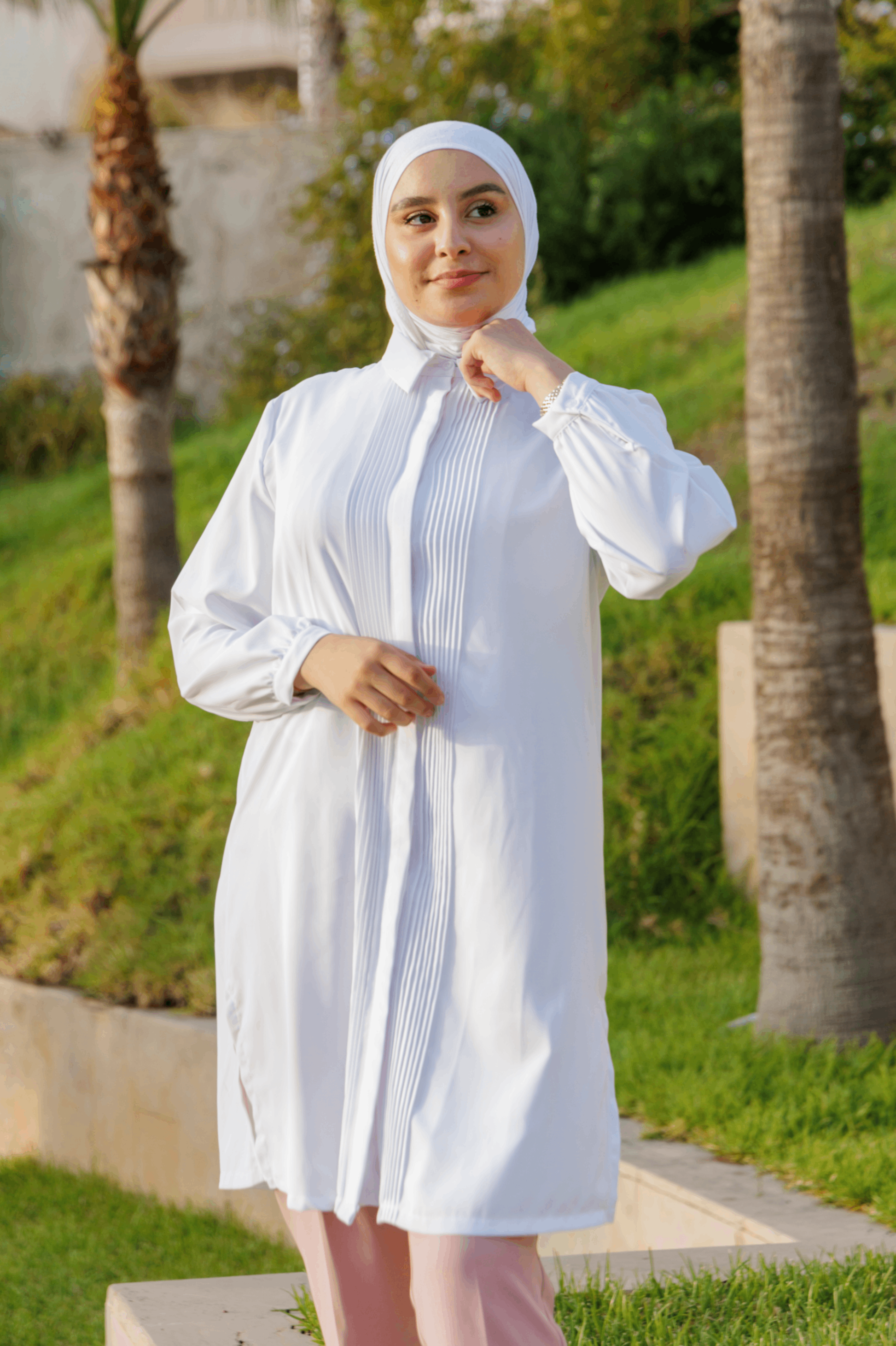 Une chemise qui combine élégance et discrétion, parfaite pour un style modeste et chic.